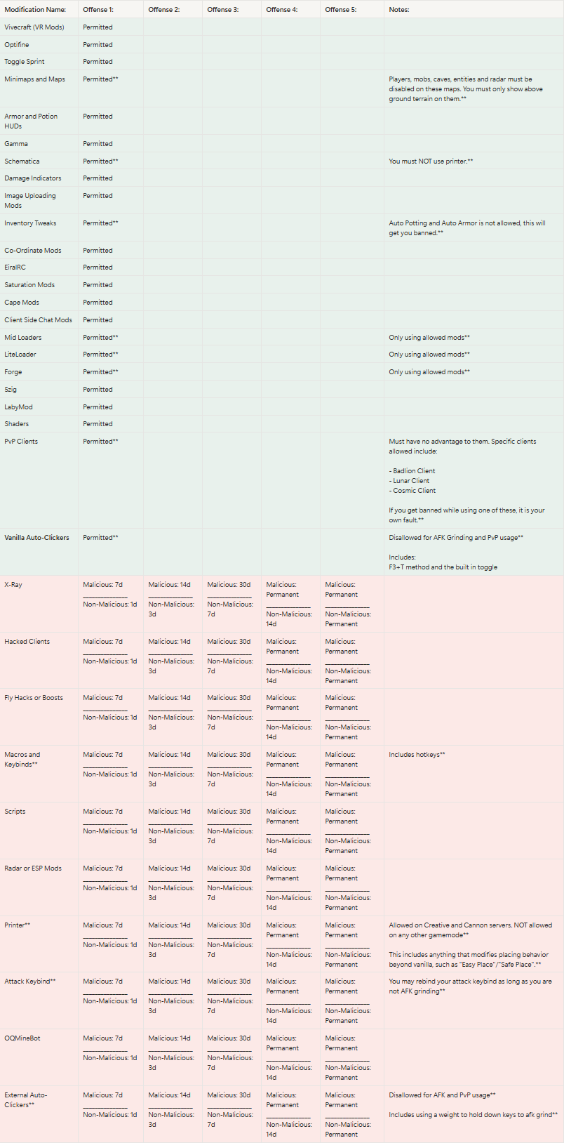 Disallowed Modifications All of our Disallowed Modifications warrant a ban of the same name.💡Please read notes on the right for any exceptions **